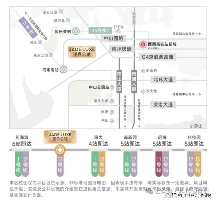 •15号线同乐关站(在建中,预计2028年12月开通),串联宝中/前海/深圳湾/西丽,也被称为深圳“一环线”,本项目为环线上的重要一环;