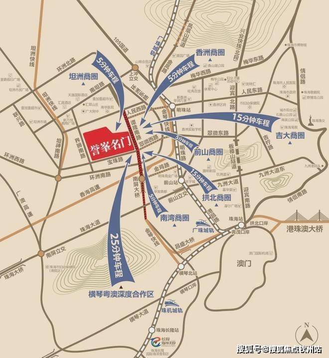 约5~15分钟车程可达珠海前山、拱北、吉大,以及坦北区域;