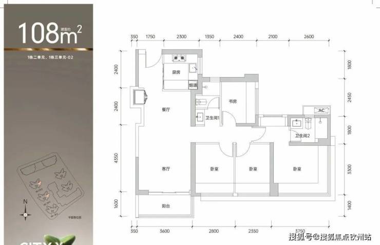 建筑面积约89㎡的3+1房2卫的01/07户型:全能型成长空间典范