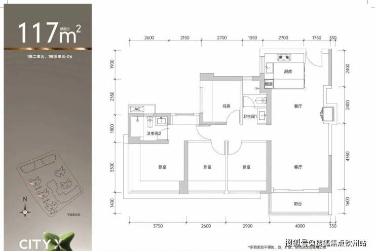建筑面积约99㎡的3房2卫02/03/05/06户型:全南向爆款空间