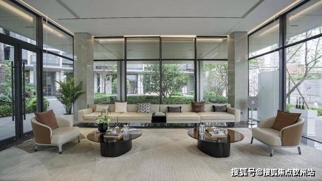 缓缓流动的海浪水景、海礁植物园、约400㎡露天泳池和背后郁郁葱葱的园林,串联而成一条高颜值的艺术中庭,非常符合当下年轻人的审美。