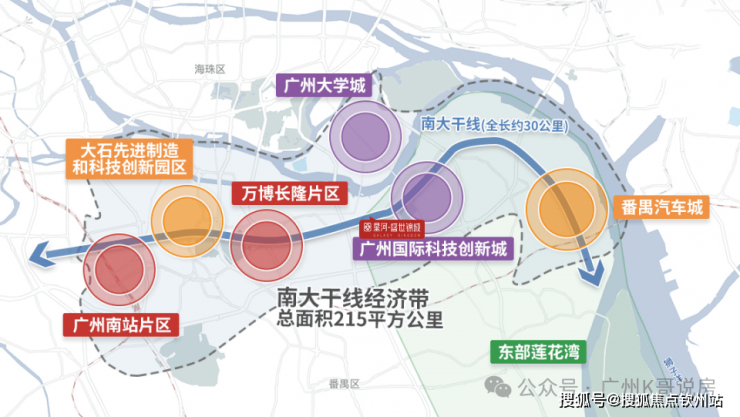 地处南大干线经济带上的番禺黄金财智走廊,不仅是连接珠三角东西岸的重要发展走廊,更串联了番禺多个关键经济台,如广州南站、长隆万博、国际创新城以及汽车城板块。