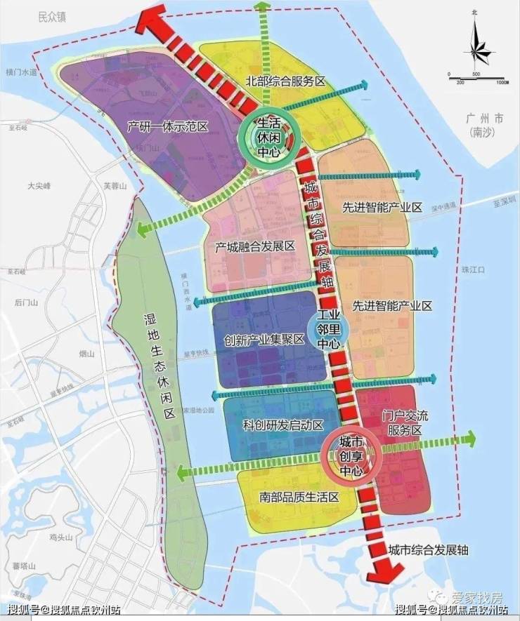 从功能上,该片区以创新驱动城区,以优质景观带串联多种产业平台,构建「深中通道智创发展轴、创享科技岛、共享服务坊、国际总部坊以及智能制造坊」的“一轴两湾,一岛三坊”新价值格局,再造一座科技岛,加速深中融城。