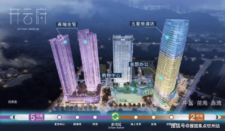 开云府项目位于南山区招商街道赤湾地铁站E口,也是目前赤湾首个地标综合体。项目建筑最高能够达到200米,未来可以作为赤湾的地标。地下是商业,地面五六层停车场,设计非常好,加上项目背山向海,周边环境宜人。