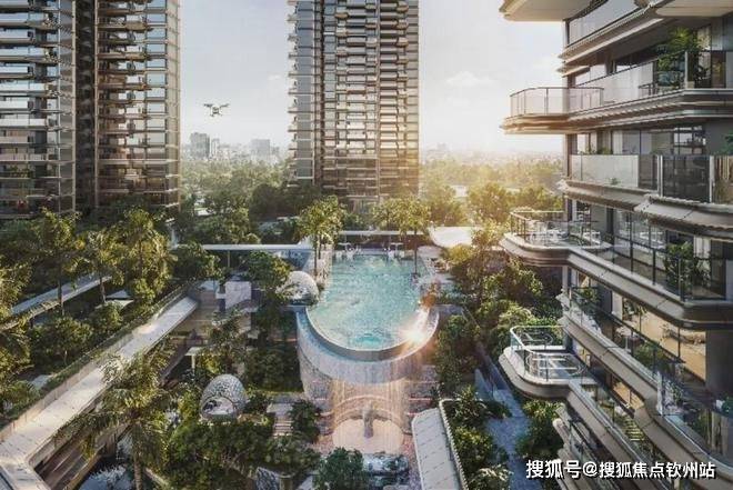 配套紧700方超大空中会客无边际泳池,高空无界度假观感。
