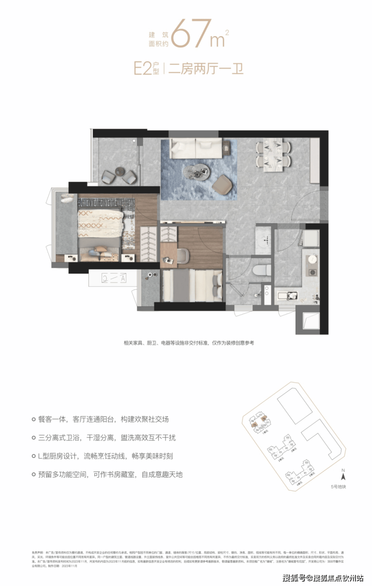 【E2户型67㎡二房两厅一卫】