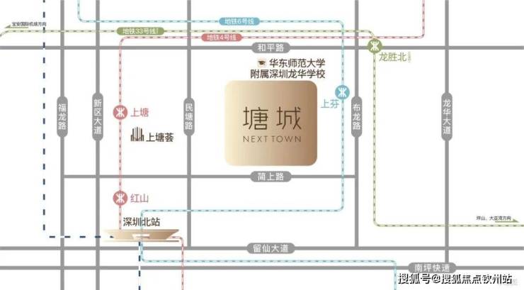 项目近达4号线上塘站、6号线上芬站、33号线龙胜站(在建中)三大地铁轨道,2站深圳北站,3站宝安国际机场。
