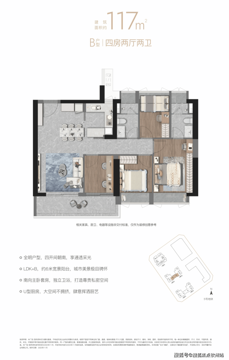 “南向全明四房LDK+B”设计,宽景阳台,拥揽四季