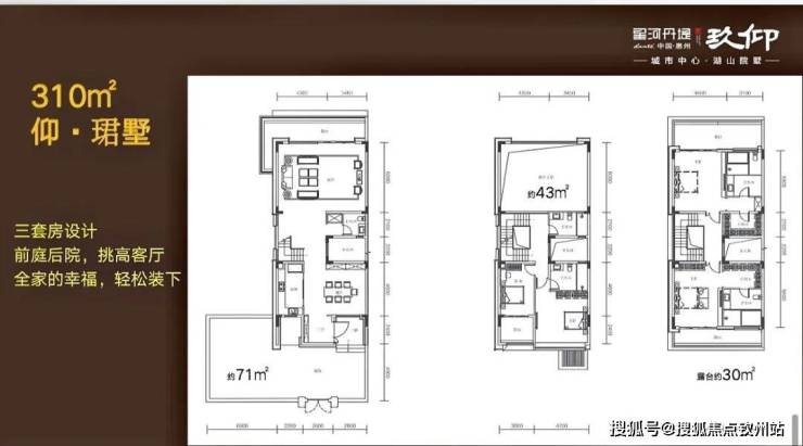 242双拼合院:位置在湖心岛,产品稀缺共28套,下沉式庭院隐私性好,使用面积780平,买三层享五层,五层全采光设计
