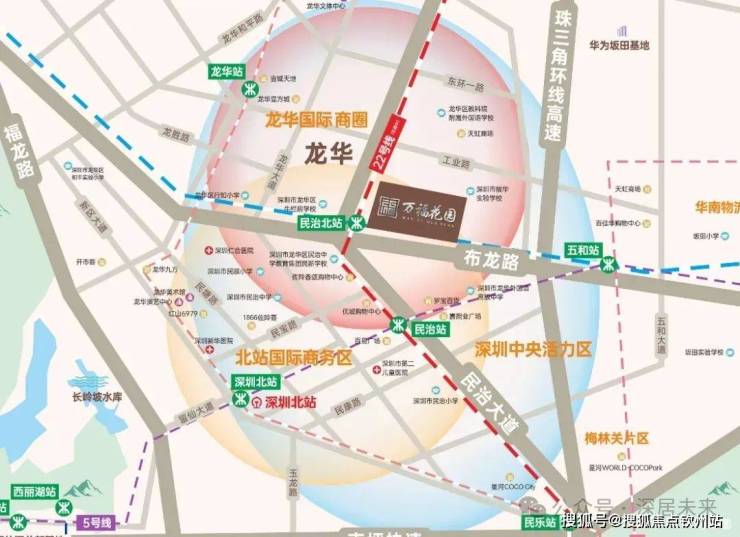 万福花园位于龙华民治街道,布龙路与民治大道交汇处,距离深圳北站近约2.5公里,又位于龙华国际商圈内,依托时代发展,板块迅速崛起,项目所在的民治板块,作为深圳都市核心区的核心区域,是龙华“一圈一区三廊”中央活力区的核心区域,对标福田,南山,罗湖等中心区,集齐了总部经济、金融、科技、文化、购物、休闲、国际商务、创新、生态等功能。