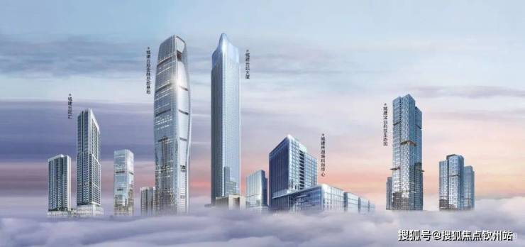 约63万㎡城建云投创新金融总部基地,以约380m地标云投大厦,勾绘城市天际风景线