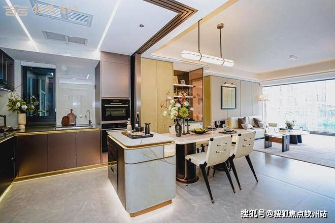 再搭配西式岛台,中西双厨合璧,无论是宴请好友、品酒会客,都有全明宽敞的欢聚场。