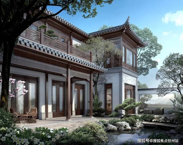新中式低层住宅在传统中式基调上,根据岭南独特气候特征,增加开窗面和乘凉外廊,增加批檐防晒遮阳,美观与实用并举,在保留传统中式韵味的基础上营造出新中式的独特风格,引领审美和生活方式。