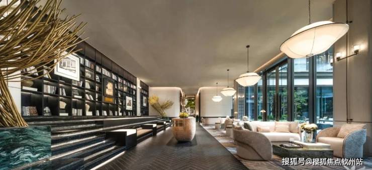 穿过黄铜大门,来到接待中心前厅,这里的空间感十足。主色调采用定制的 “珺绿色”,地面铺装天珺专属的星空猫眼绿拼花奢石,中央的玉石艺术品 “破璞成玉” 更是震撼人心。整个示范区以 “玉” 为创作底蕴,总面积近万方,造价过亿,打造了六幕十二境的礼序感受,诚意满满。