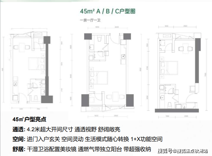 ✅45㎡ 一房一厅;