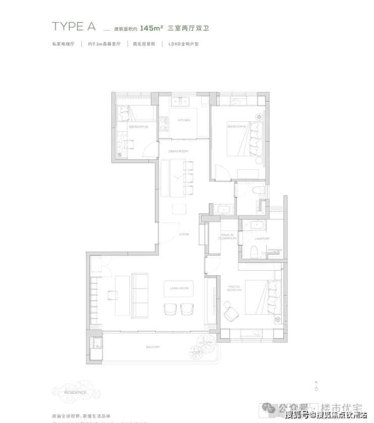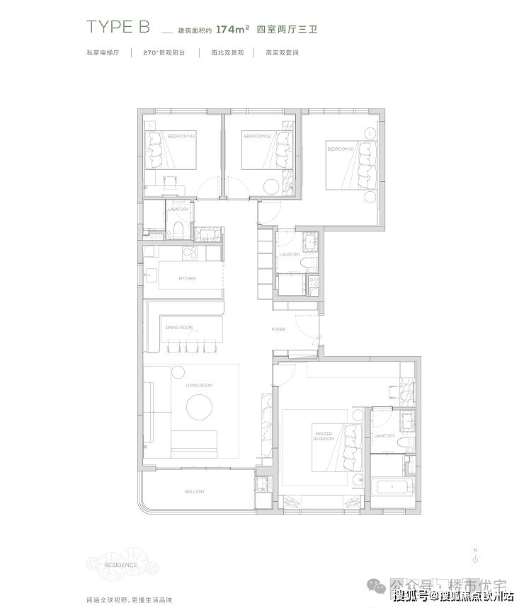 项目推145㎡、174㎡户型,1-3#、20-22#六栋,16F小高层产品,2梯2户,边套174㎡,中间套145㎡,后期将推出250㎡大户型产品。