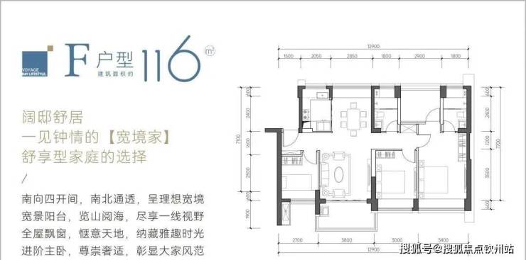116㎡的4房2厅2卫,F户型,设计的是竖厅南北通透格局,客厅3.8米开间,四开间朝南,4个卧室分别做到了主卧18.02㎡/次卧12.3㎡/次卧8.7㎡/次卧8.37㎡(包含墙体飘窗),得房率约:88%(包含赠送),阳台主朝西南或东南向。