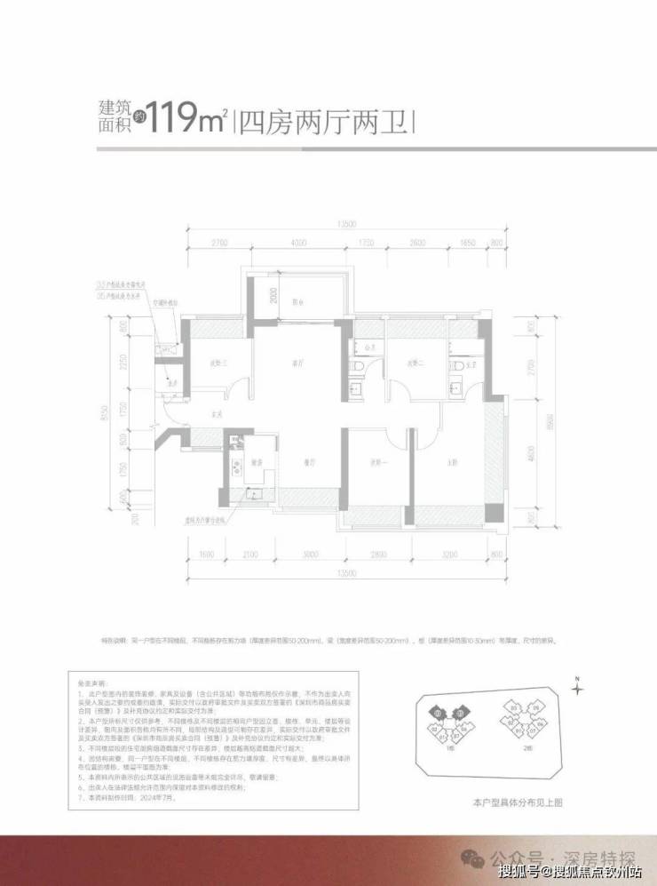 119平,四房两厅两卫,总价490-570万,2至12楼。25楼至49楼。