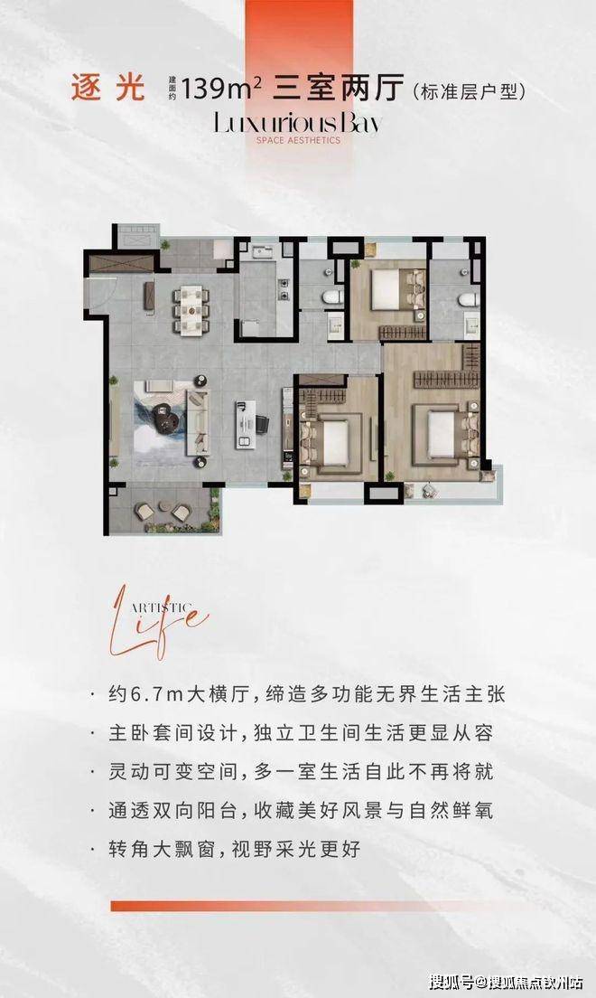 以7.6m大横厅,深U型厨房以及奢阔休闲阳台,彰显高阶气度与格局,独立入户的设计互不打扰,静享私密,南向大横厅,让阳光、风景与生活常伴。再次以奢阔美学艺术生活,敬献金山大人物。
