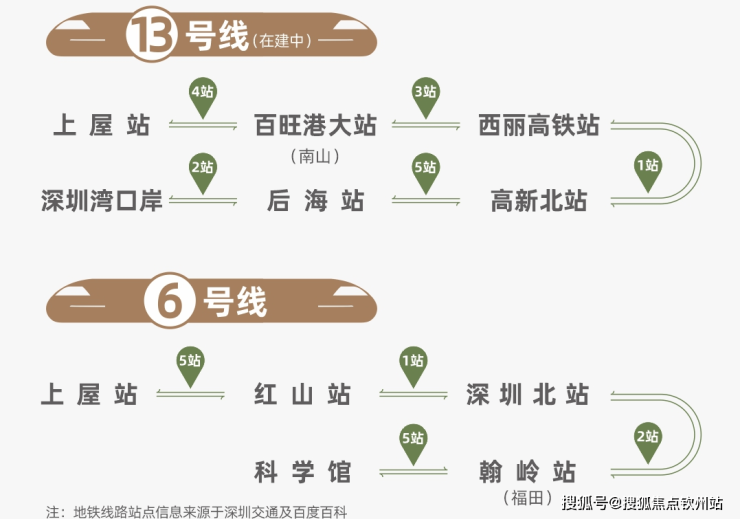 项目约直线距离400米抵达6号线、13号线(在建中)上屋站,6号线8站福田(翰岭站),13号线(建设中)4站南山、8站科技园(高新北站)。