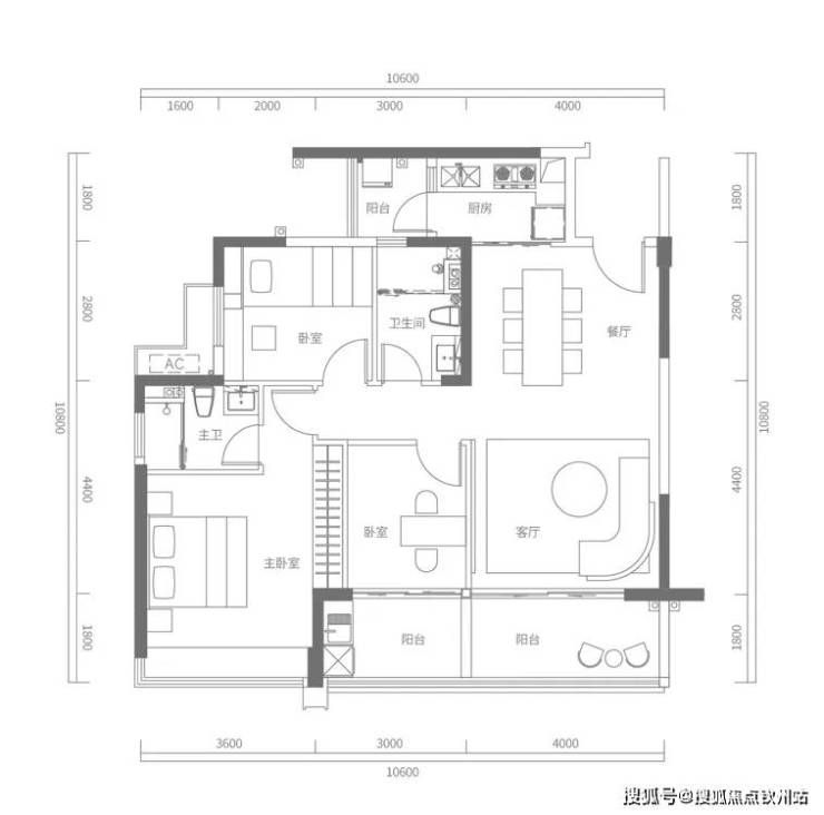 C户型建面约120㎡,3+1房2厅2卫