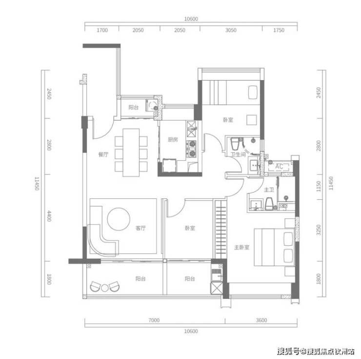 A户型建面约117㎡,3房2厅2卫
