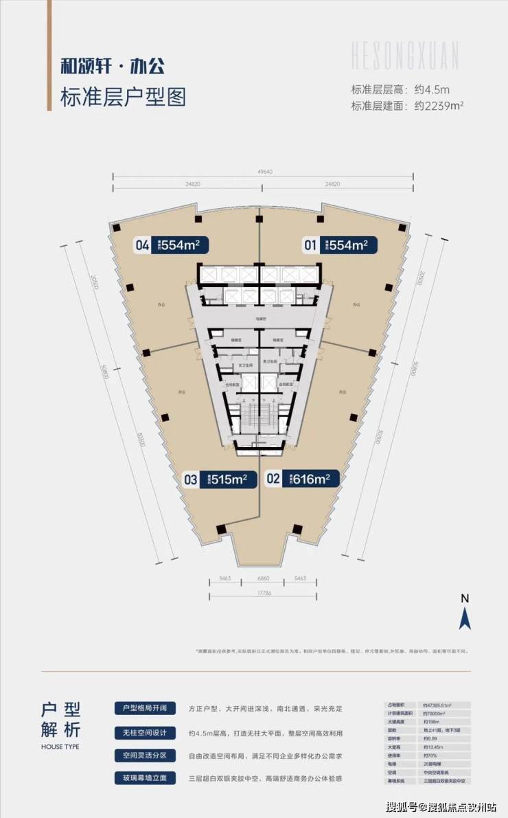 和颂轩甲级写字楼-2建面约490-550-616-2237㎡超甲级办公准现楼!