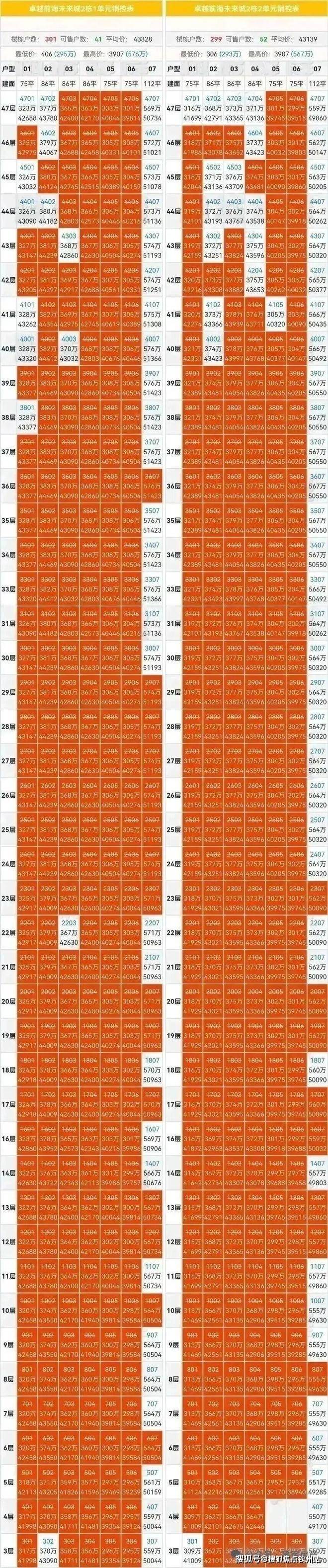 据建军房产了解,本次卓越前海未来城1栋开盘,也打出了8.76折的综合优惠,折后均价4.02万/㎡,折后单价3.68-4.51万/㎡,折后总价238-511万/套。共推出588套,剩余512套,备案76套,去化率12.93%