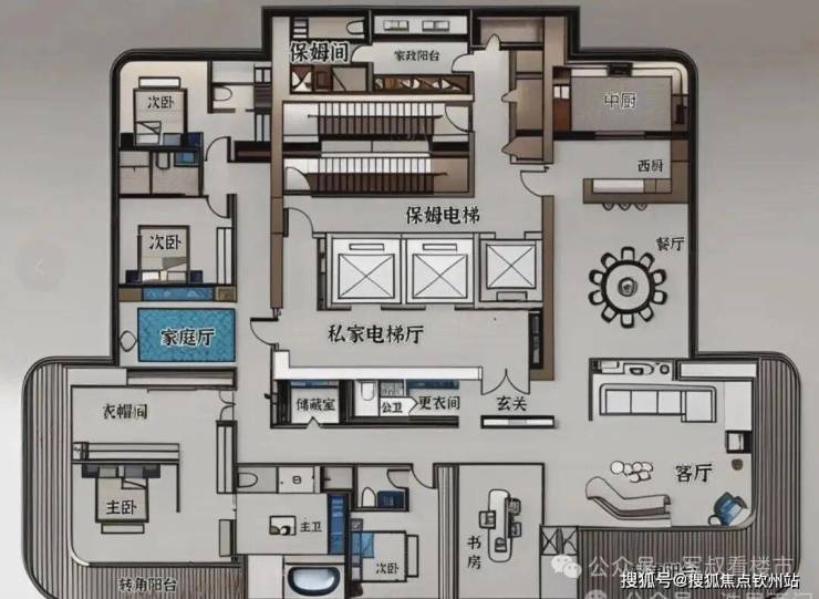 305㎡四房四卫+家政套间