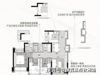80㎡三房两卫:得房率 80.69%,有竖厅南北通透和横厅等设计,主卧独立卫浴,动静分区。