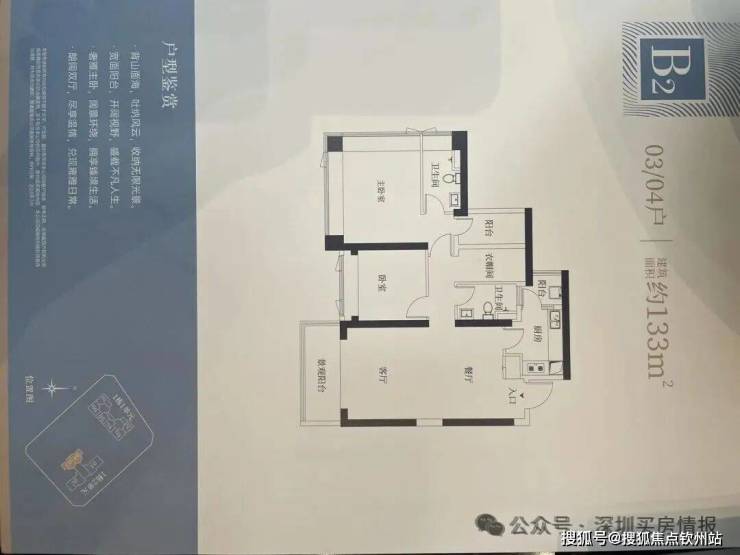 【124㎡的3+1房2厅2卫】1栋户型,竖厅格局,LDKB一体化设计,动静分区,主卧套间设计,还有一个多功能间可以做书房,U型厨房,公卫三段式分离,得房率:72.07%(不含赠送);