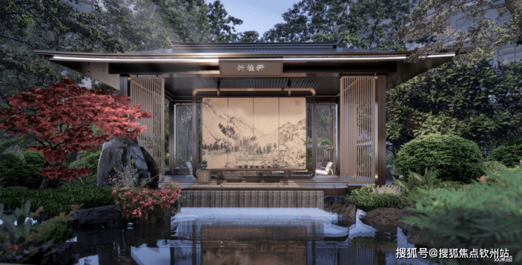 真正的传承,意味着在敬畏中创新。项目团队多次实地踏勘清晖园,提炼其“清晖毓秀门至状元堂”的空间序列——以“入口-轴线-水院-宅园”的节奏,应用于西区主入口流线设计。并以澄漪亭为蓝本,打造西区视觉核心“折桂轩”,内部以艺术玻璃承映《富春山居图》,外部联动琉璃材质的“小飞虹”拱桥,再现清晖园陶瓷釉面与套色玻璃花窗的工艺记忆。