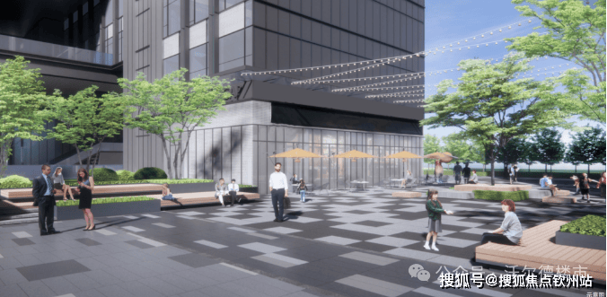 【宇宙中心-简约时尚园林景观】采用简约成熟稳重的设计理念,通过点缀在公共空间中的绿植景点和商业活动区的水景花坛,将开放空间与环境相互融,塑造时尚与活力的城市景观公共空间。