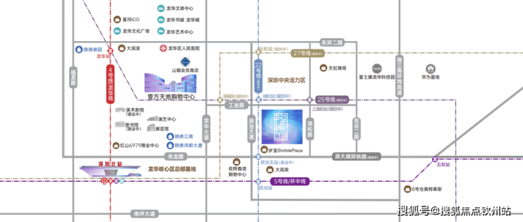 立体枢纽 构建高效城市生活圈,七地铁环绕,4/5民治站/6/10号线已通车,22油松站/25上油松站/27号线松和站(规划中)交汇于龙华油松片区,畅达深圳北站、福田CBD、后海中心区,五主干道,民治大道/龙华大道/工业路/布龙路/梅观路,铺就片区骨干交通,快速通达福田、南山、罗湖