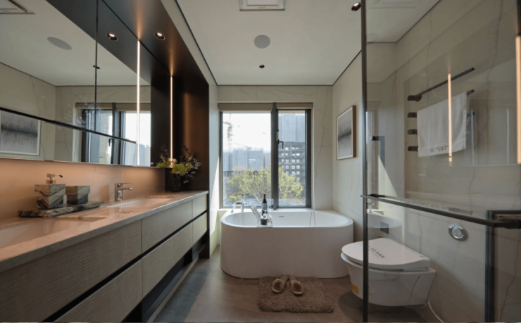 (1)建筑层面以科技精工为基础,流体立面采用大面玻璃幕墙和系统门窗技术,兼顾节能与抗台风性能,打造湾区地标级安全住区。
