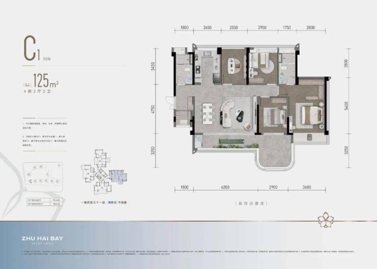 环绕式错层露台设计(每户约30㎡不计产权面积)结合270°环幕落地窗,革新传统的“华发科技+新一代好房子”,实现超100%以上得房率。
