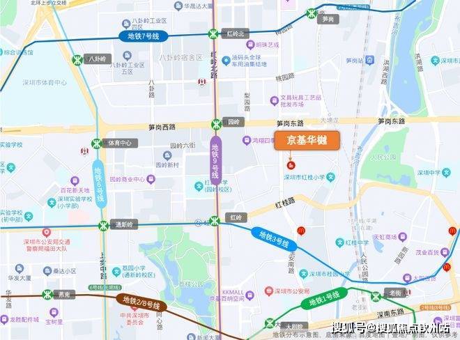 京基蔡屋围板块有6条地铁线路环绕,而首发项目-京基华樾距离最近的9号线-园岭站直线距离约600米,与地铁3号线、9号线交汇的红岭站直线距离约700米,我愿把这称为“恰到好处的距离”:既能享受到地铁的便捷,又能不被轨道噪音所影响。[6]
