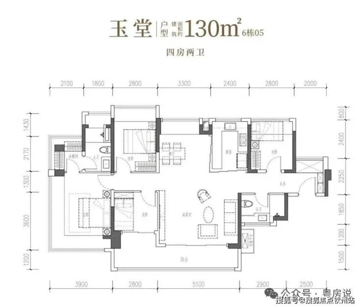 四开间IMAX光幕引景入室,以LDKB家庭聚场升温情感,更以双转角主卧套房,礼献一方休憩殿堂。• 玉堂·建面约130㎡4房2厅2卫:南向四开间,约14.7米IMAX光幕,尺度自成