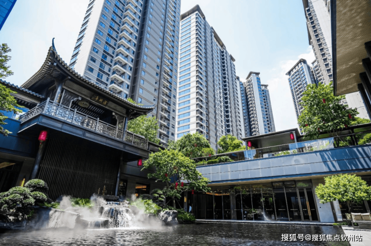 走进社区: 更是大写的“哇塞”!两轴三庭、五进六园的中式园林设计,假山流水、亭台楼阁全都有,中间还藏了个恒温泳池+健身房+茶室的下沉会所。