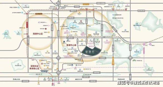 鹏瑞鹭璟府,位于龙华区观湖街道五和大道与澜清一路交汇处,地处鹭湖新城核心板块,紧邻观澜高新园区。该片区被定位为“科技行政文化核”,与深圳北站商务区共同构成龙华区“双核中心”,是龙华区打造“数字龙华,都市核心”的重要载体。