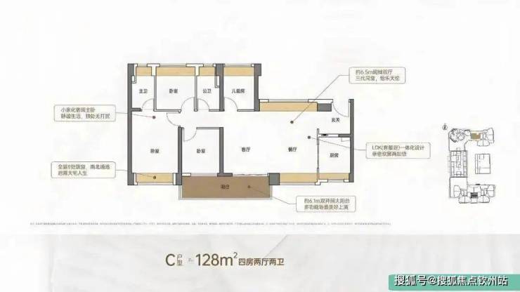128㎡四房两卫,折后650-710万,单价5.1-5.5万