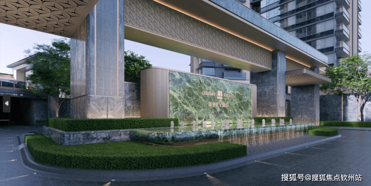 ②门仪:约70m宽奢阔主入口,绿奢石照壁、天然花岗岩门头