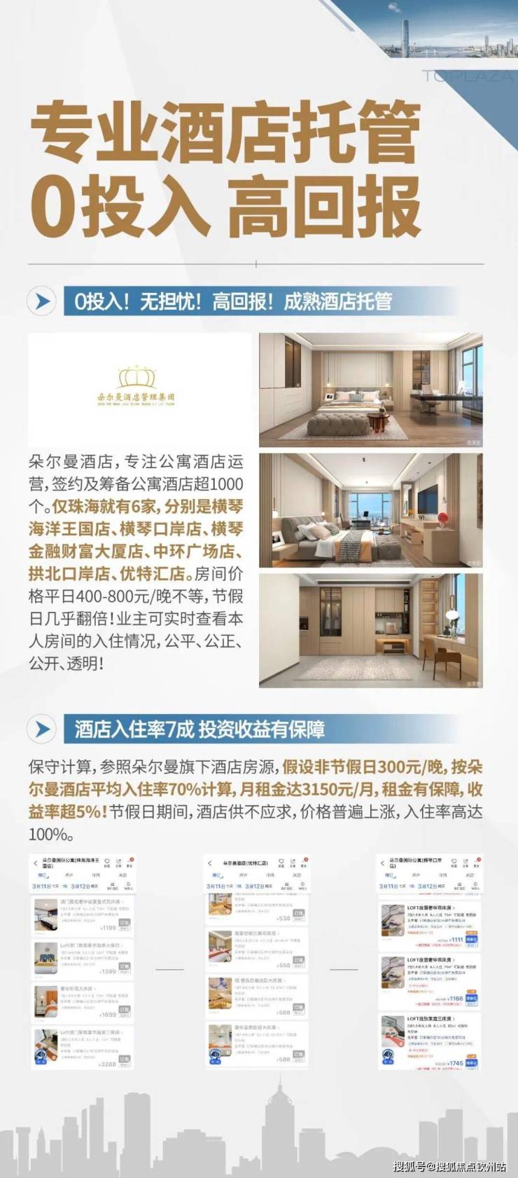 珠澳CBD国际星级酒店集群,近80%年酒店入住率。长隆酒店5000套住房一房难求,租金高达800-1500元/天,喜来登、瑞吉酒店房价高达1500-2500元/天。节假日更是水涨船高,供不应求。