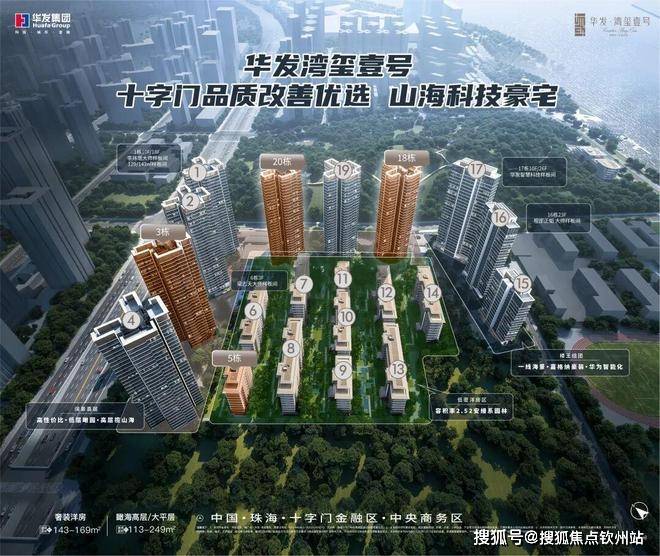 项目整体包含10栋8-10F低密洋房、7栋阔景山海高层、3栋瞰海大平层,共20栋楼。是琴澳滨海CBD最后一块可开发的纯住宅用地,产品为建面113-246㎡四至五房产品,均为高品质精装修交付