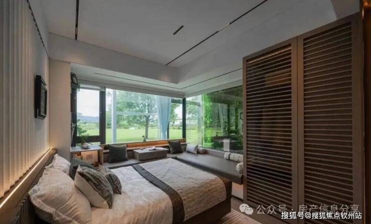 主卧套房实用面积约22㎡,270°转角无柱飘窗的设计,减少了墙体对于景观面的干扰,采光和视野都更好,而这种无柱结构的实现,也需要投入更多的成