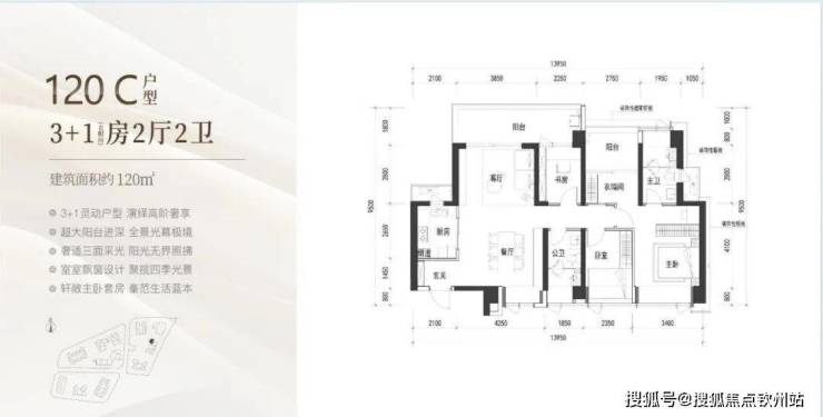 (2)120㎡3+1房2卫:主卧套房超30㎡,可灵活改造空间,适合改善型需求。