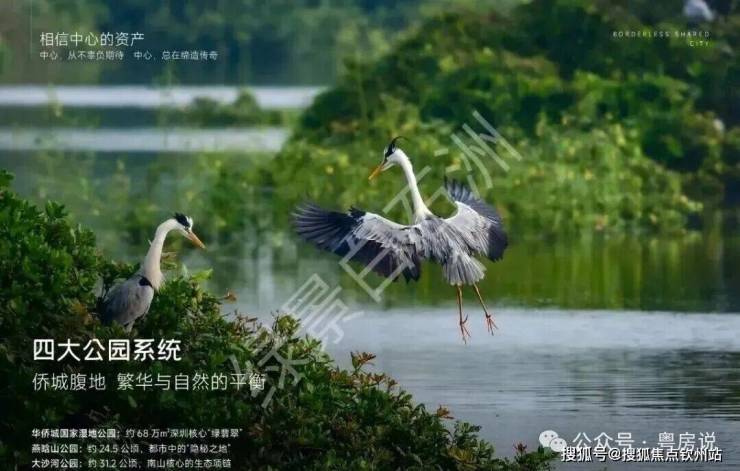约3.4平方公里中央公园、约24万m2燕晗山郊野公园、约68.5万m2华侨城国家湿地公园、深圳湾超总十字生境、绿景白石洲约1.2公里中央绿轴,约15km滨海长廊,与华侨城三大主题公园,共同组成深圳超级公园带,每一次呼吸与远眺,都有来自国家级生态保护区的气息。
