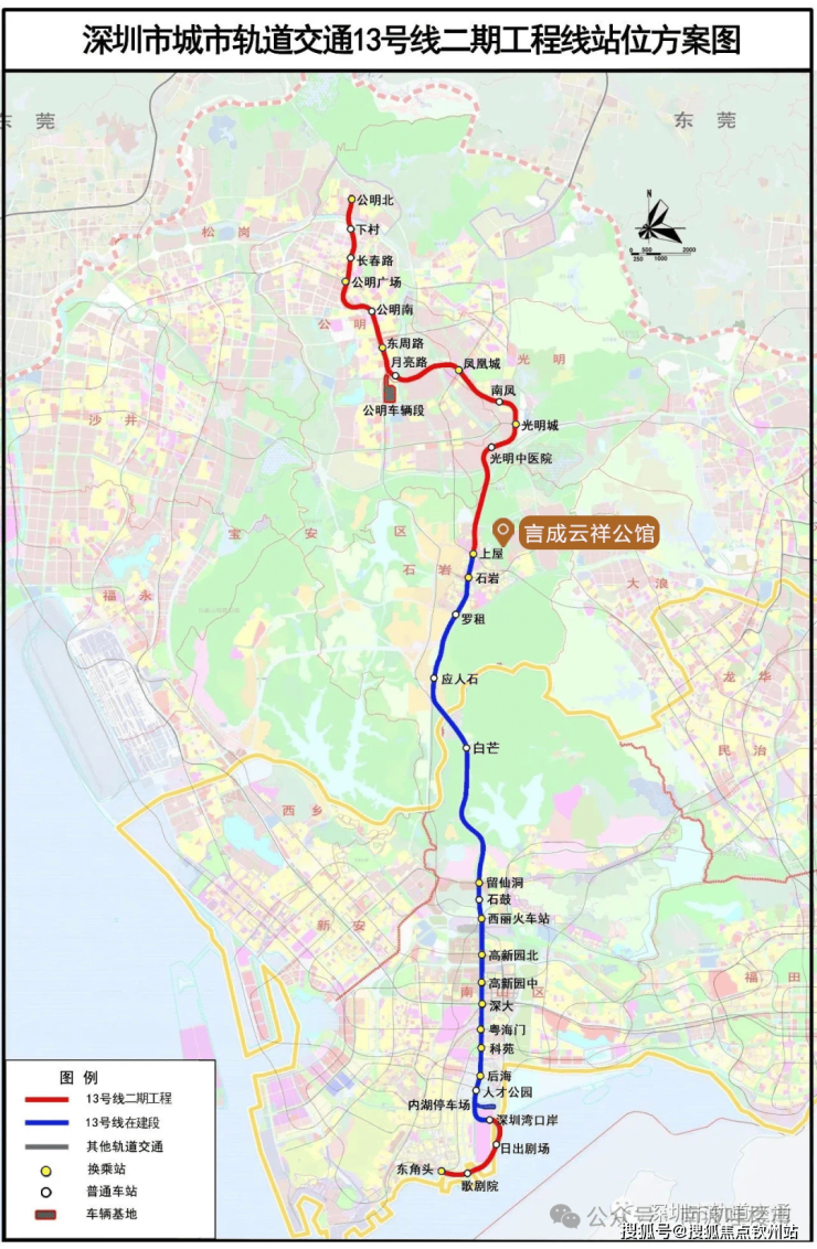 13号线据深圳交通局官网称将在2025年年底开通,该线路也是深圳3条快线之一,号称“深圳科技核心大动脉”,从南到北,串联深圳湾总部基地、后海中心、南山科技园、西丽高铁枢纽、留仙洞总部基地、白芒科研机构、宝安石岩科创城等多个重要片区。沿线华为、中国电子、腾讯、阿里等500强汇集,大批高新人才聚集,形成科创阵地,势必引领片区经济崛起。全程时速120公里,4站到南山百旺港大站,7站到南山西丽高铁站,8站到高新北。