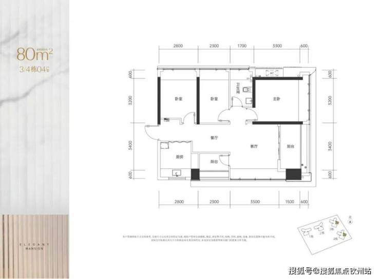 80㎡的3房2厅1卫,3/4栋04户型,设计的是竖厅格局,客厅4米开间+飘窗处,LDKB一体化设计,客厅双面采光,3个卧室分别做到了主卧12.18㎡/次卧9.16㎡/次卧8.1㎡(实测面积,去掉墙体),U型厨房,卫生间干湿分离,得房率约104.5%(包含赠送),东南朝向。