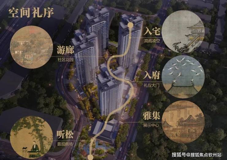 一方面,项目通过「听松」、「雅集」、「入府」、「游廊」、「入宅」五重礼序,形成多层次新宋美学景观,为社区带来了四季常绿、一步一景的视觉享受。